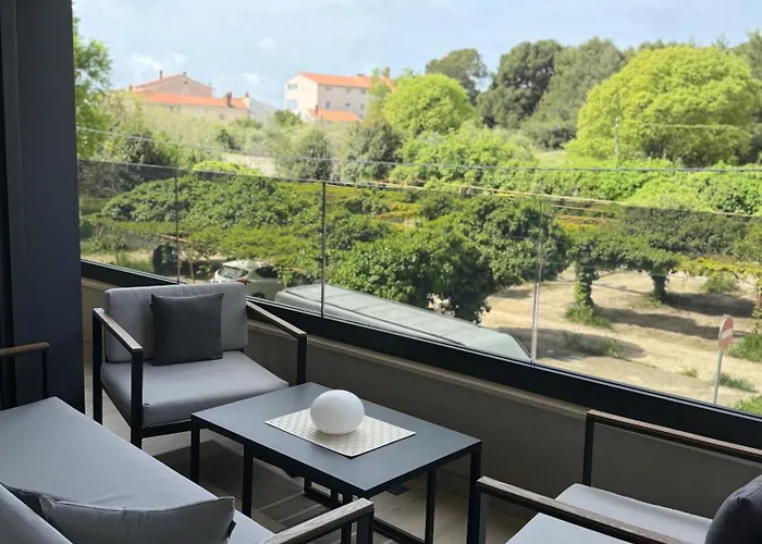 Tijdens een verblijf in Apartment Bubi Pula van 73 m^2 kunnen gasten zich ontspannen op een terras op circa 25-minuten loopafstand van Boog van de Sergii. Het strand appartement biedt uitzicht op de tuin.